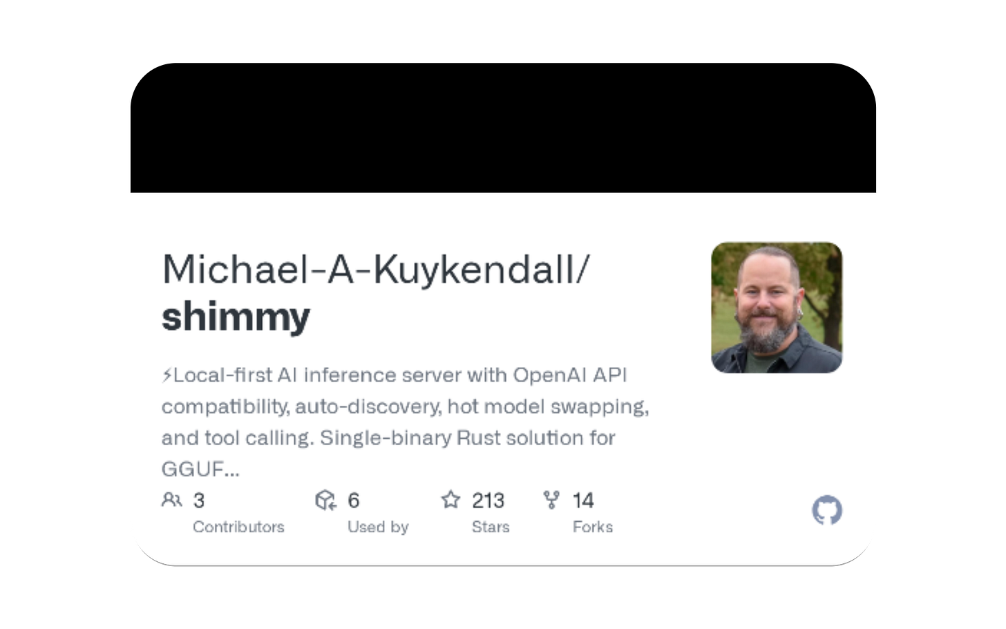 Now this is impressive! Shimmy (MIT License) tackles one of the most annoying problems in local AI dev: why does every LLM runner require hundreds of megabytes and manual configuration? This tiny, invisible infrastructure provides OpenAI API-compatible endpoints in a 5.1MB binary (!) that starts in <100ms with only <50MB memory overhead. Zero configuration, auto port management, perfect for experimenting with Gemma, DeepSeek, and Qwen models.